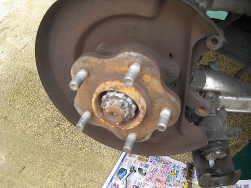 外したらこんな感じです。ちなみにハブボルトはこの状態で交換します。