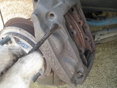 - マスターシリンダーから一番遠いキャリパーから行う。シルビアは左後ろ。
