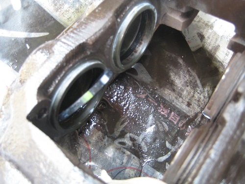 そこでシリンダ内にブレーキフルードが送られてくる穴が開いていると思いますが、その中にパーツクリーナーを押し込んだらブレーキホース(パイプの部分)からたくさんカスが出てきました。これで一安心です。