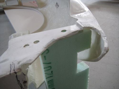 手元に断熱材があったので、適当にカットして置き台を作りました。この上からFRPを再度貼り付けます。この断熱材はFRPを貼り込むとき、FRPが垂れると溶けてしまうので注意してください。