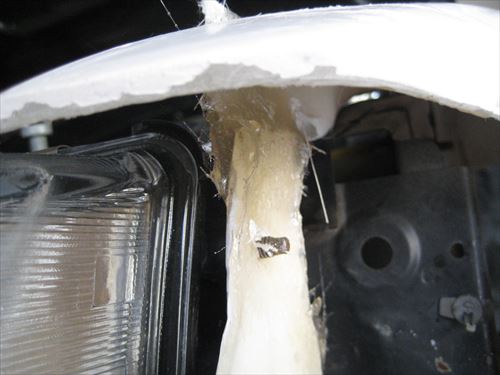 外装は現在こんな汚い感じです。一度色を塗ってもらったのですが、当時は屋根無しの駐車場に放置していたせいか、すぐに塗装がはげてしまいました。しかもバンパーをはぐると・・・