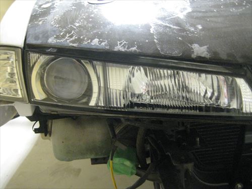 ヘッドライトの内側はフレームのステーにネジ留めされています。実はこのシルビアは前期だったのですが、顔だけ後期に変更しています。このときステーを後期用に交換したのですが、そのときにずれてしまったのでしょうか?原因は不明ですがこのステート上にオフセットします。