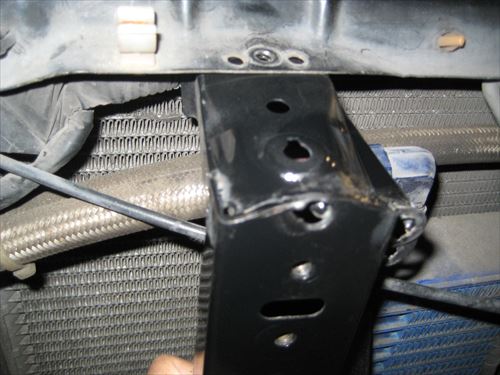 オフセットといっても、ネジで適当に穴を開けてではできません。ドリルでスポット溶接の部分を外し、ステーを分解。その後ステーを切断して再度溶接しました。下側の固定はネジ穴を長穴にして対応しています。
