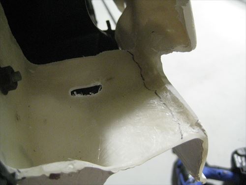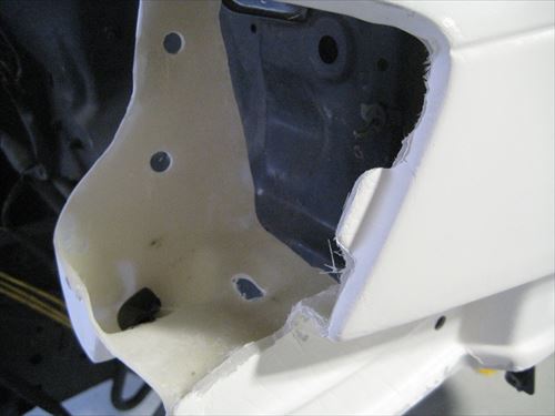 下側も切断します。これでヘッドライトを取り付ける部分はフェンダーから完全に分離されます。