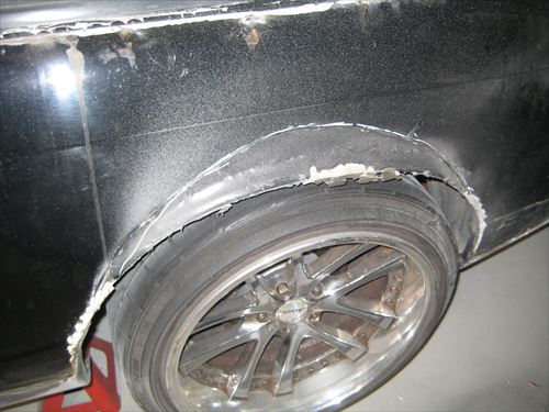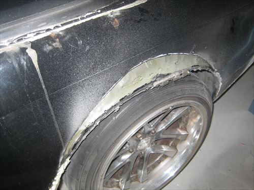 しかも表面はうねっているし、一番気になるのは内部のフェンダー処理を適当にしていること。つまりこのブリスターフェンダーでツライチにすると内部(本物)のフェンダーにタイヤが接触してしまいます。 今回は一度ブリスターフェンダーを取り外して、フェンダーの切り上げをしてから再度取り付けします。