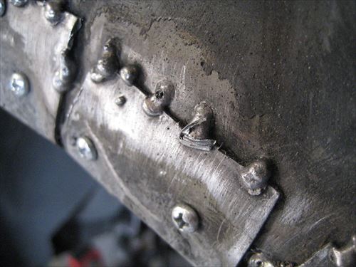 位置を確認しながらリベットで固定します。ステンリベットなのでものすごく硬いです。がんばって固定しましょう。 一応リベットを打ち込む位置にはパネルボンドをつけています。まぁここまでする必要があるのかは疑問ですが。