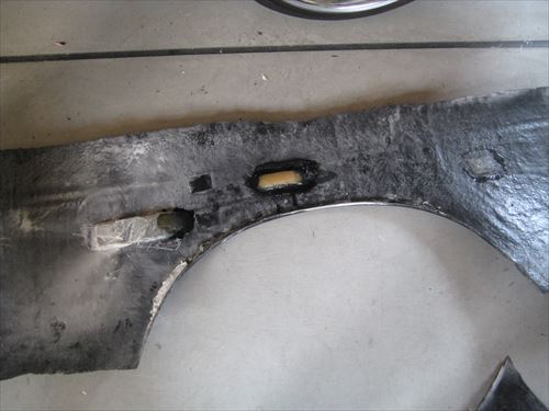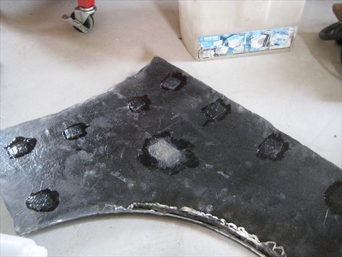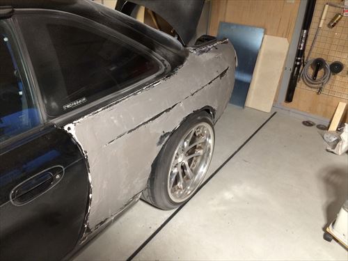 フェンダー表面に薄く塗ります。あとはこれを削っていくだけですが、今日はここまでにしておきます。