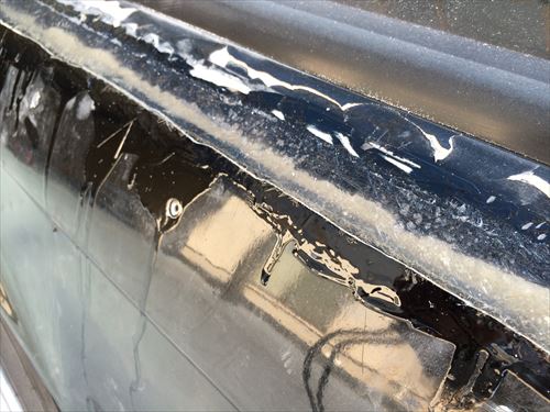 反対側もしっかり隙間を埋めます。ここにへらを突っ込んでパテを入れるのではなく、なすりつける感じで押し込みます。