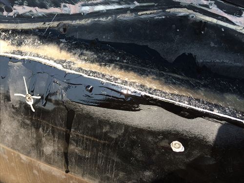 溶接後はさびが出やすいので、シャーシブラックを塗ってコーキングしています。