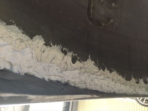 発砲ウレタンの膨らんだ部分をカッターでカットします。その上からシリコンコーキングを行って完了です。